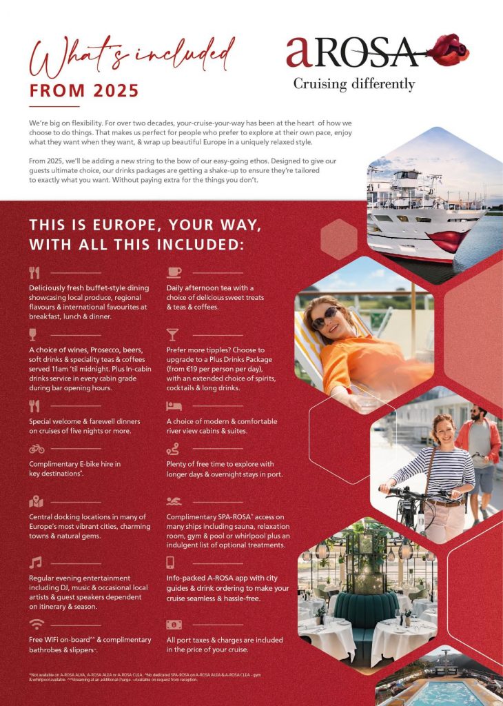 We’re big on flexibility. For over two decades, your-cruise-your-way has been at the heart of how we choose to do things. That makes us perfect for people who prefer to explore at their own pace, enjoy what they want when they want, & wrap up beautiful Europe in a uniquely relaxed style. From 2025, we’ll be adding a new string to the bow of our easy-going ethos. Designed to give our guests ultimate choice, our drinks packages are getting a shake-up to ensure they’re tailored to exactly what you want. Without paying extra for the things you don’t.
