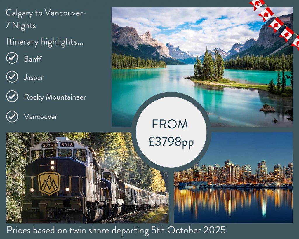 Explore the neighbouring provinces of Alberta and British Columbia and enjoy sightseeing in Banff and Jasper National Parks, the interior of British Columbia and Vancouver!