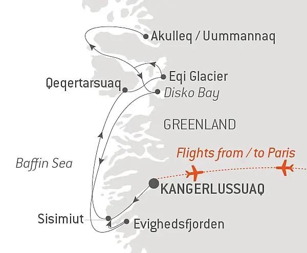 FLIGHT PARIS/KANGERLUSSUAQ + TRANSFERS + FLIGHT KANGERLUSSUAQ/PARIS