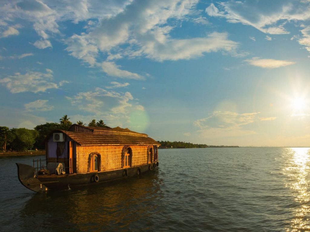Glide through the tranquil backwaters of Alleppey aboard a houseboat, savoring the peaceful surroundings.