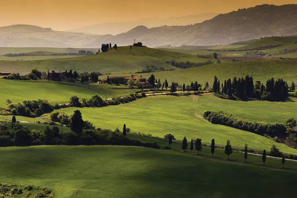 • Pedal through the rolling green hills and vineyards of Tuscany, stopping to sample the local cuisine and indulging in a glass (or two) of vino along the way.